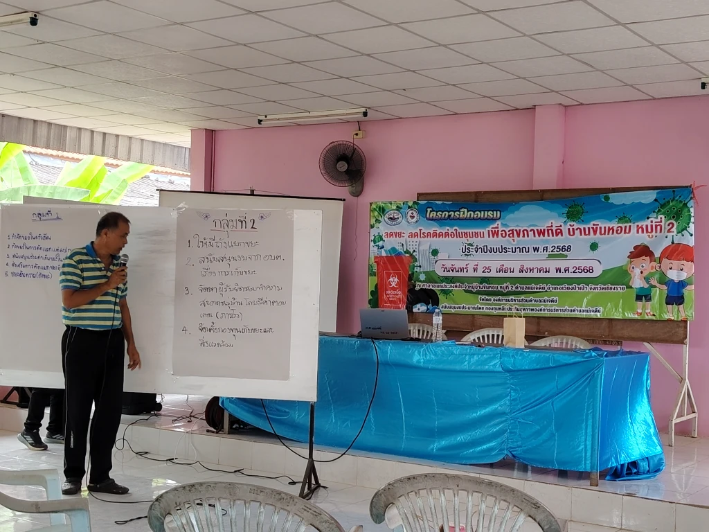 กองทุนสปช. จัดกิจกรรมโครงการฝึกอบรมลดขยะ ลดโรคติดต่อในชุมชนของหมู่บ้านขันหอม หมู่ที่ 2 ตำบลแม่เจดีย์